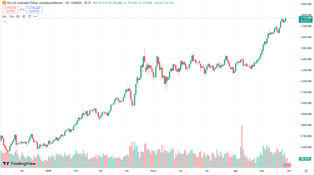En los últimos días hemos visto como el oro ha subido a unas cotas nunca vistas, de hecho, ha tenido la mayor subida en el tiempo desde 1979.